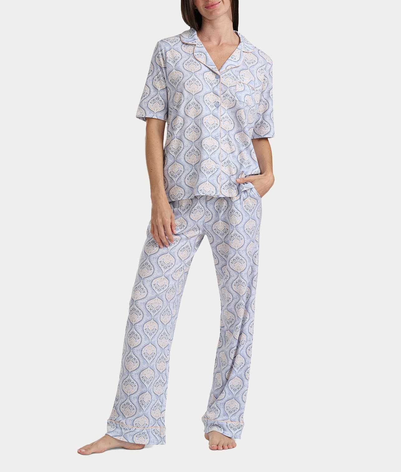 - Sweet dreams in this printed elbow-length short sleeve pajama set