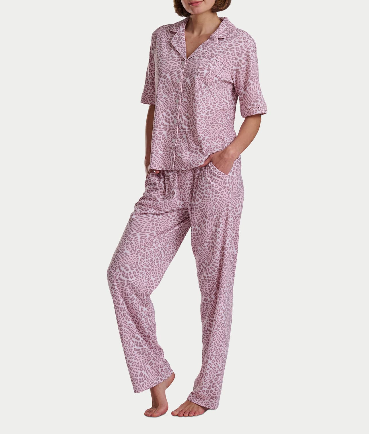 • Sweet dreams in this printed elbow-length short sleeve pajama set