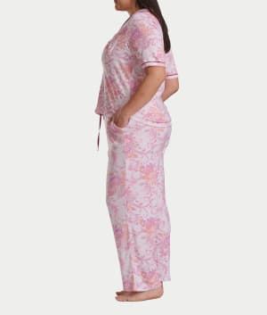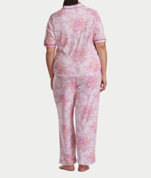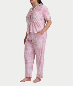 Plus Size Romantic Fields Notch Collar Pajama Set with Lace