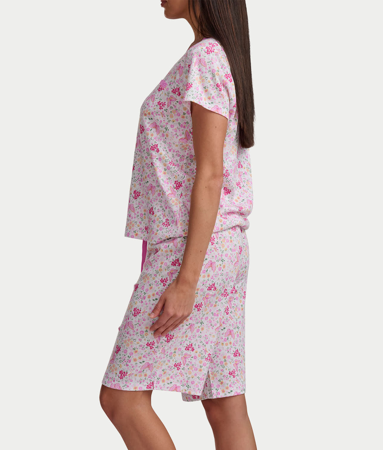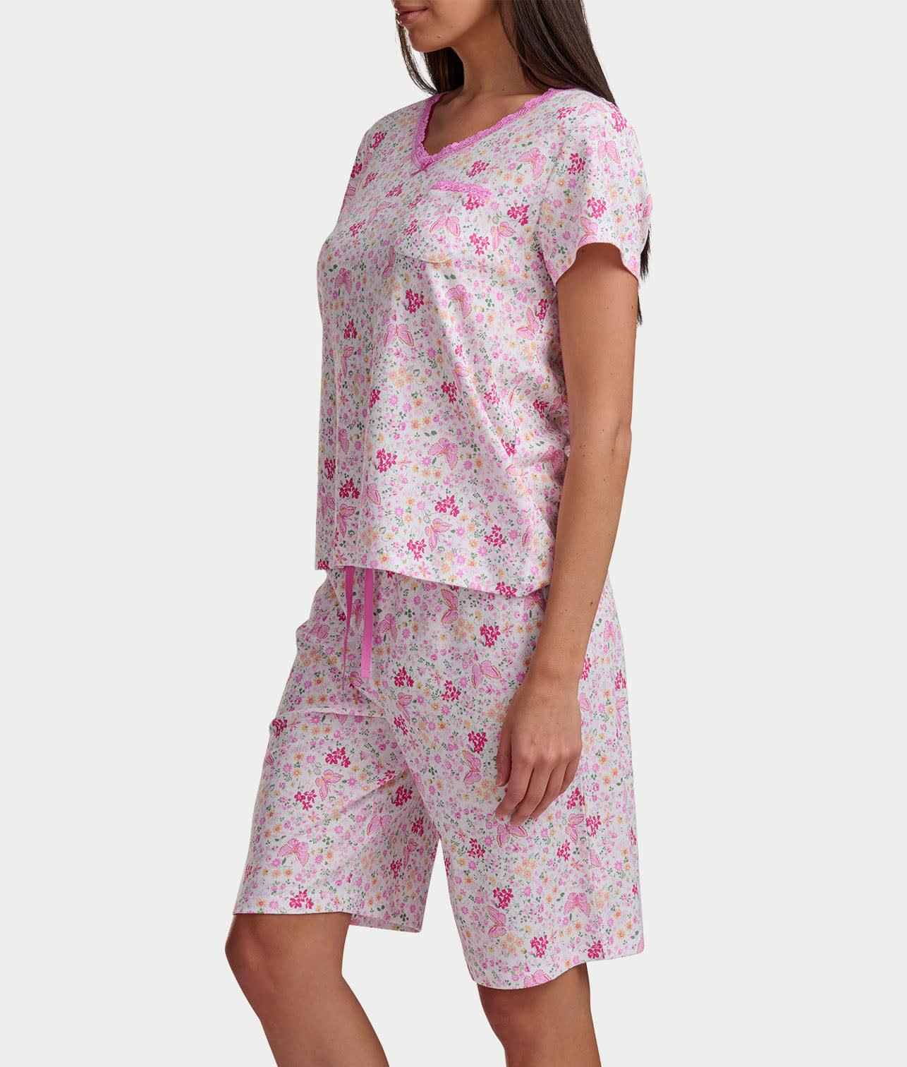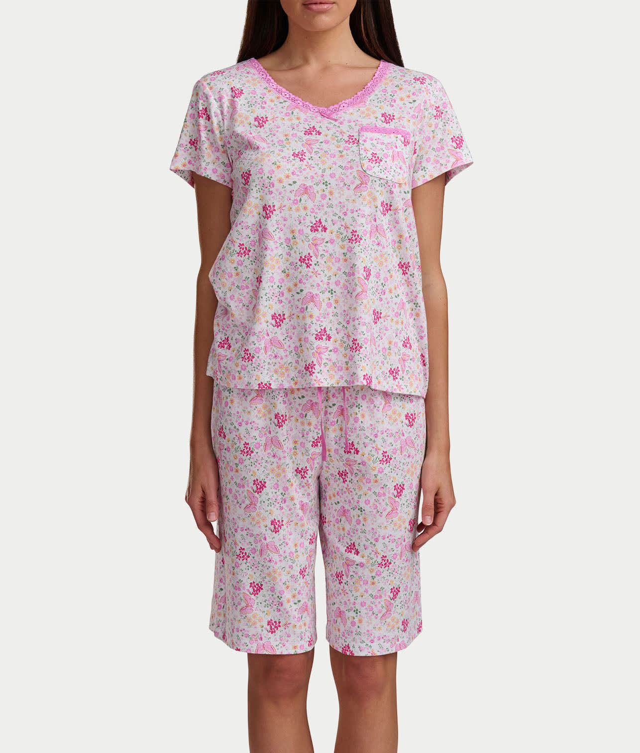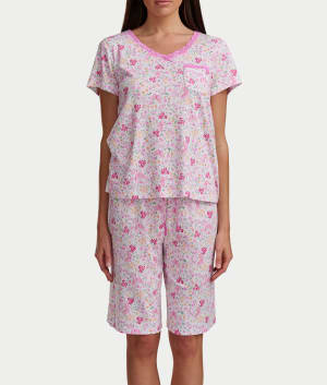 • Feel comfortable in this printed Bermuda short pajama set