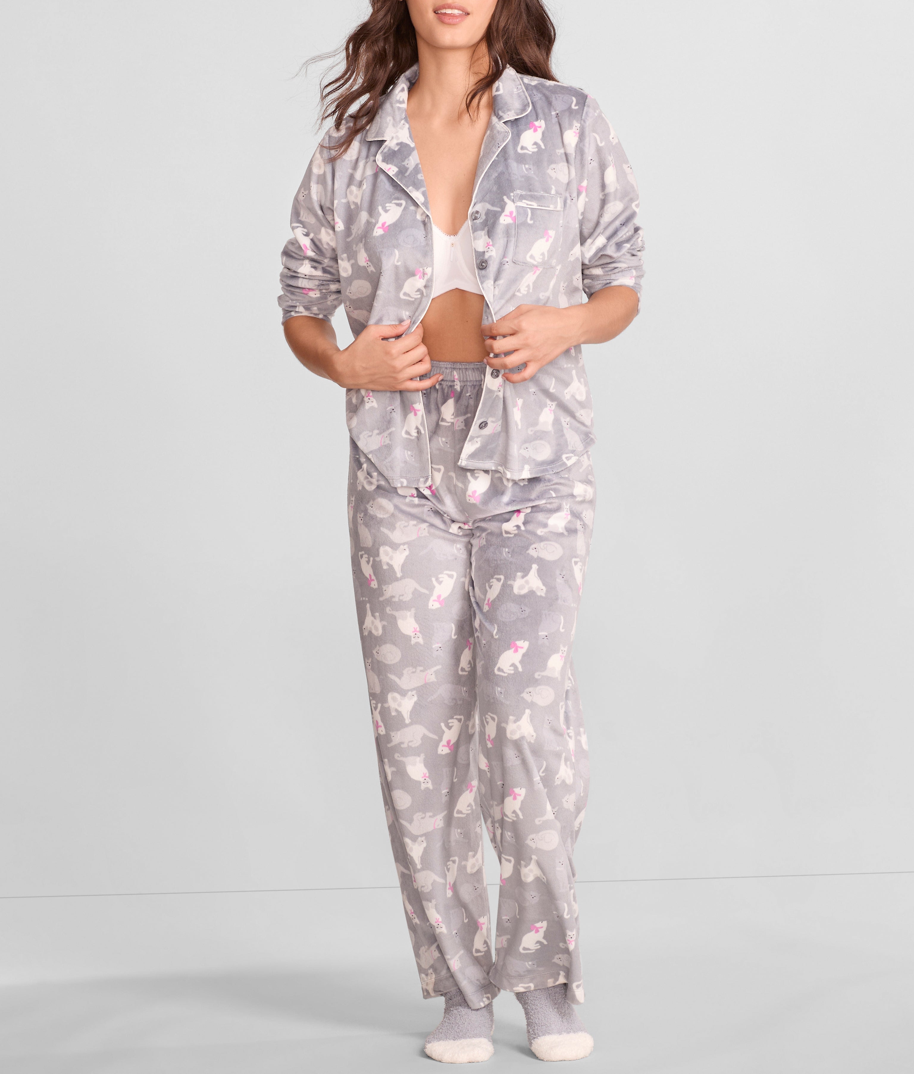 • Elastic waistband on pants with 28'' inseam; no pockets