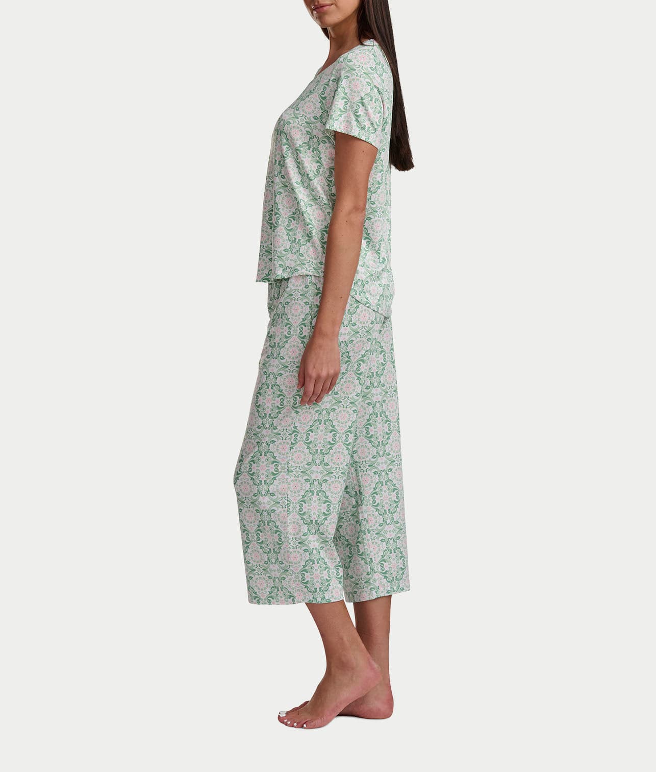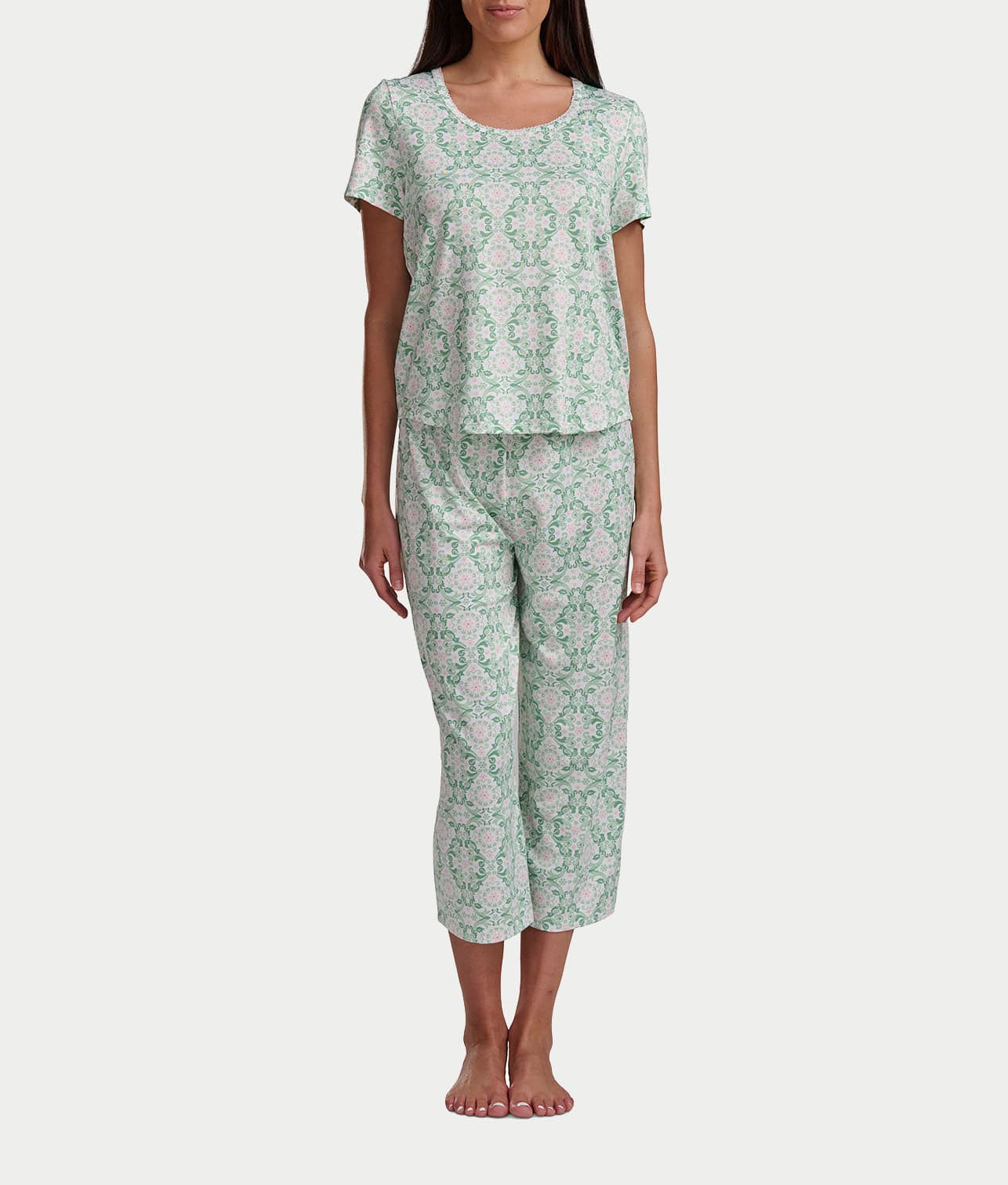 KN Cool Scoop Neck Tee Knit Capri Pajama Set Color