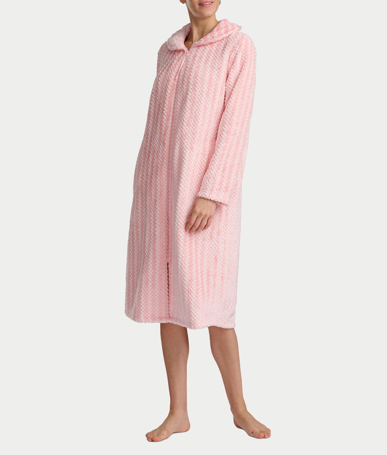 - Wrap yourself in luxurious comfort with this plush zip-up long robe