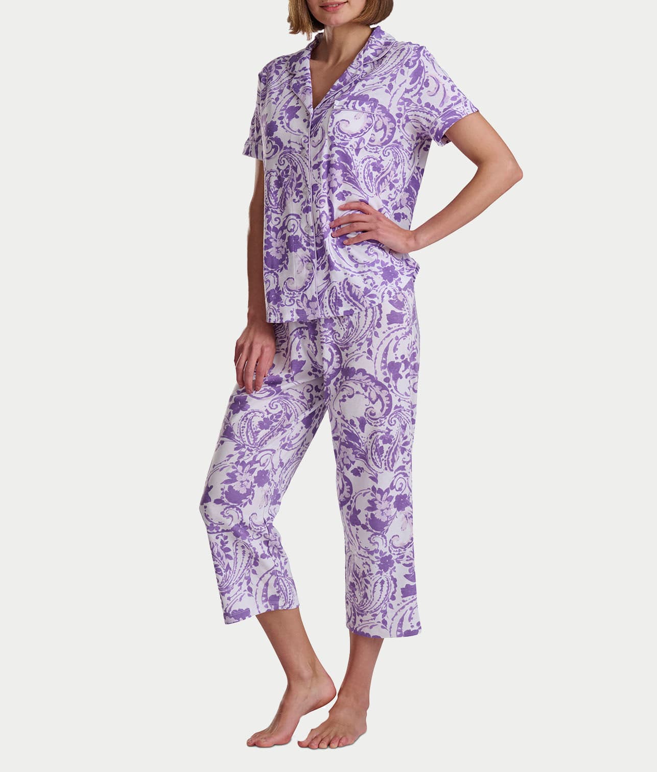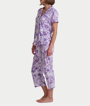Paisley Fusion Girlfriend Knit Capri Pajama Set With Satin Color