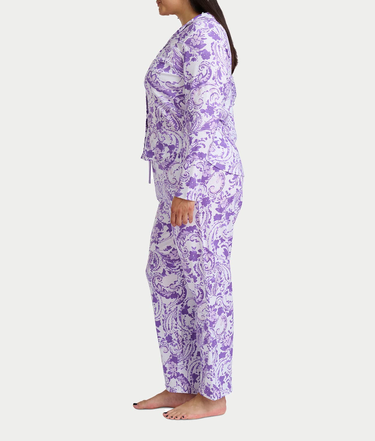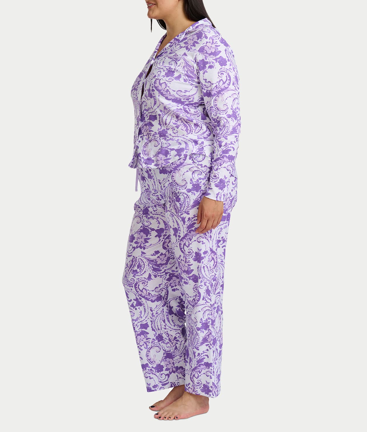 Paisley Fusion Knit Pajama Set with Satin
