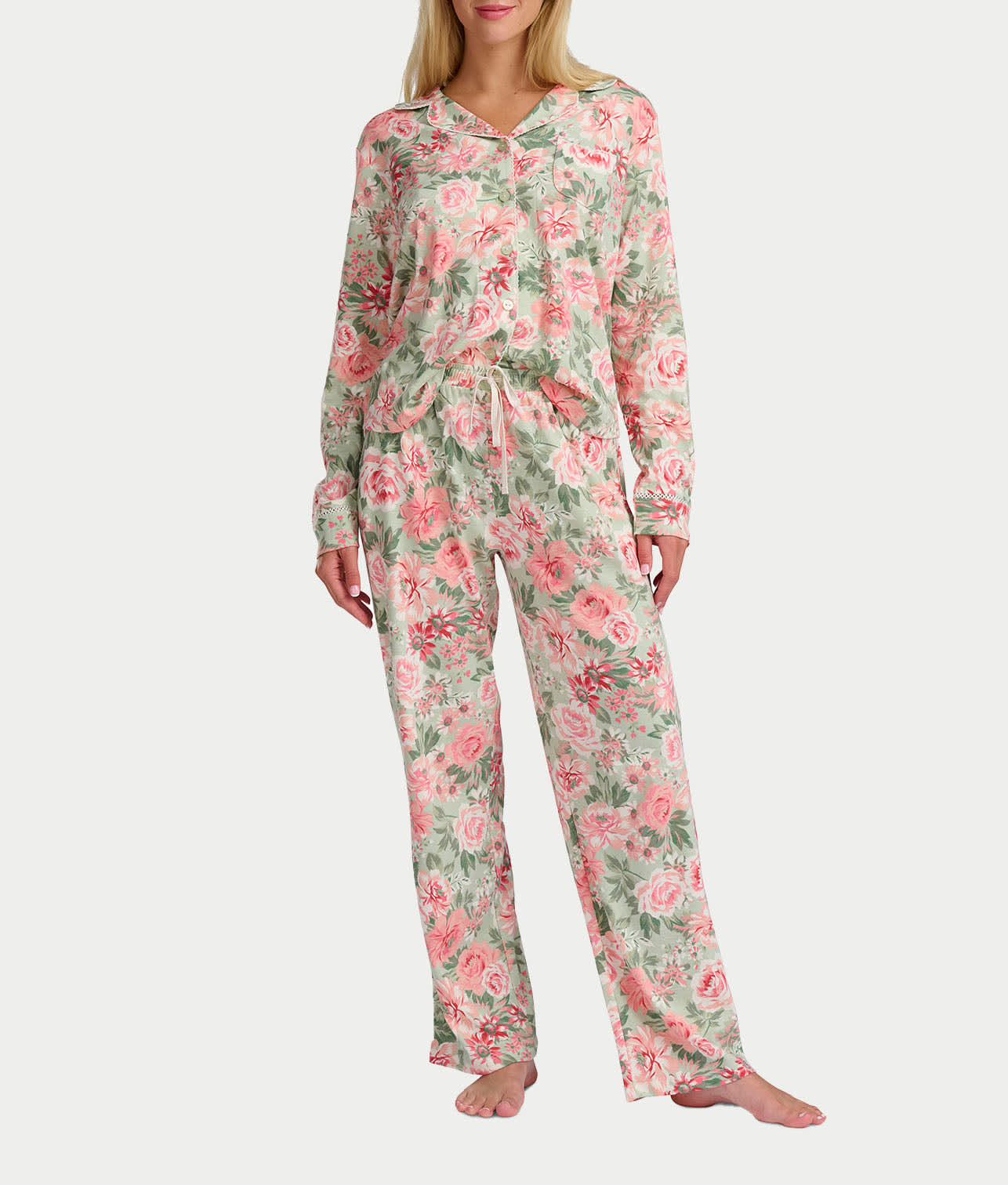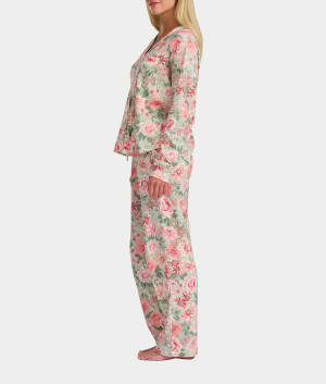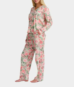 Vintage Dreams Long Sleeve Notch Pajama Set With Picot Trim