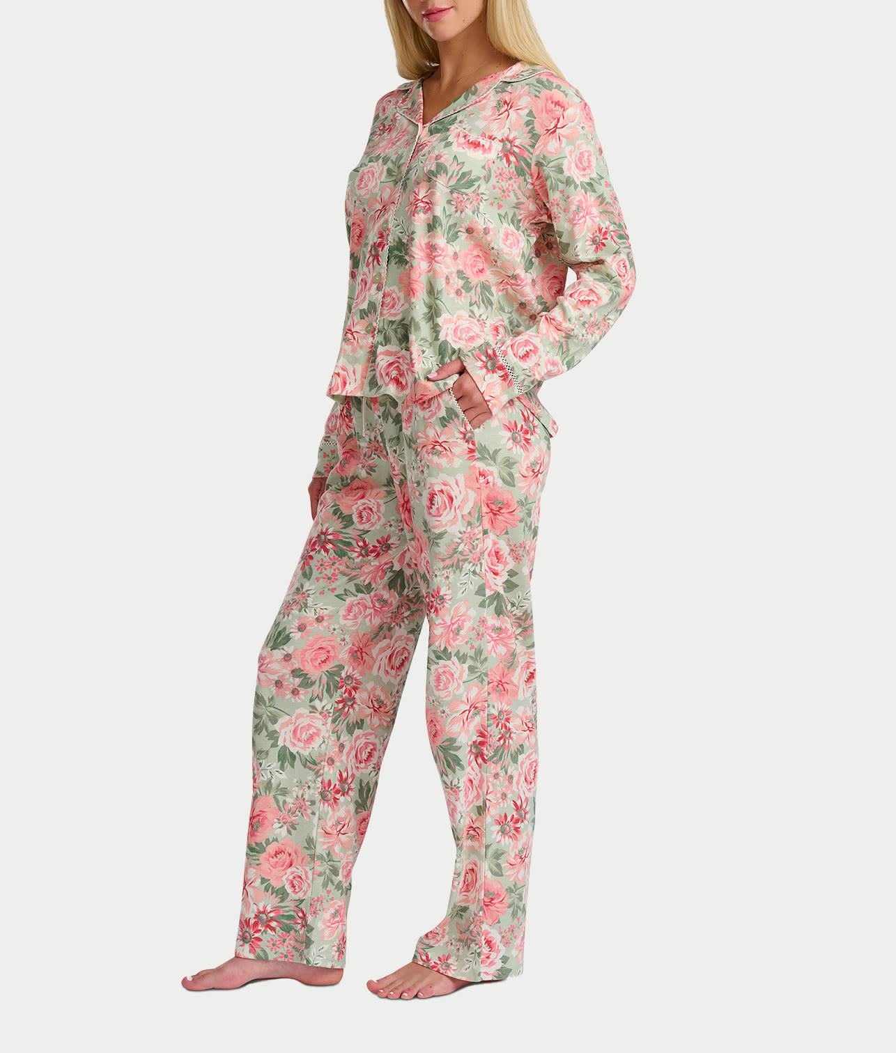 - Sweet dreams in this rose printed pajama set