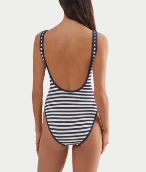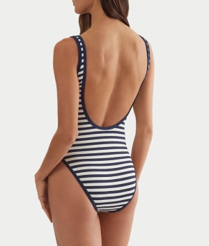 - Lay out in the sunshine in this nautical striped one-piece