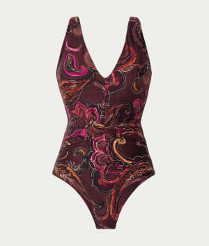 - Flaunt your stylish side in this one-piece with a luxe paisley print