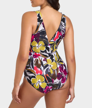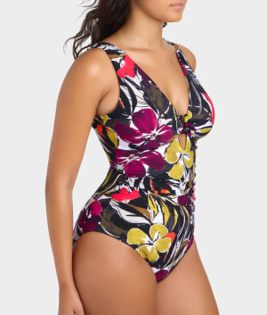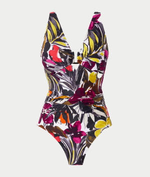 - Flaunt your stylish side in this printed chic one-piece