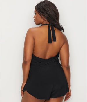 - Figure flattering romper sits atop firm control one-piece