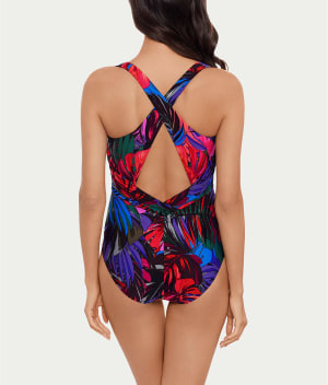 - Wide, criss-cross stretch straps in back are non-adjustable