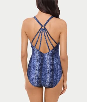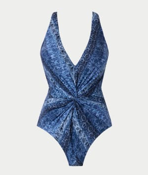 - Flaunt your stylish side in this printed one-piece with blue hues