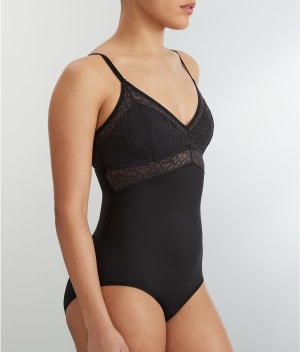 - Delicate stretch lace trim along neckline and at waist