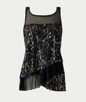 Body: 95% Polyester, 5% Spandex. Mesh: 76% Nylon, 24% Lycra Spandex.