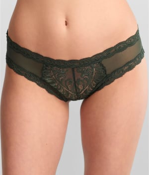 • Slip into this pretty mesh, low rise hipster with lace detail