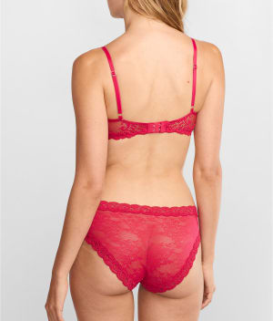 - Slip into this pretty mesh, low rise hipster with lace detail