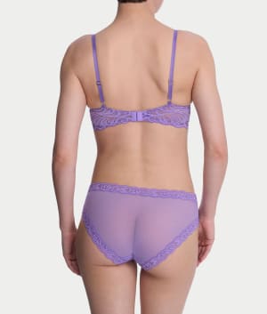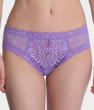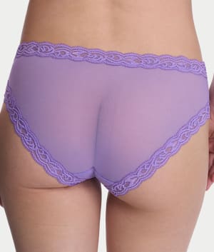 - Slip into this pretty mesh, low rise hipster with lace detail