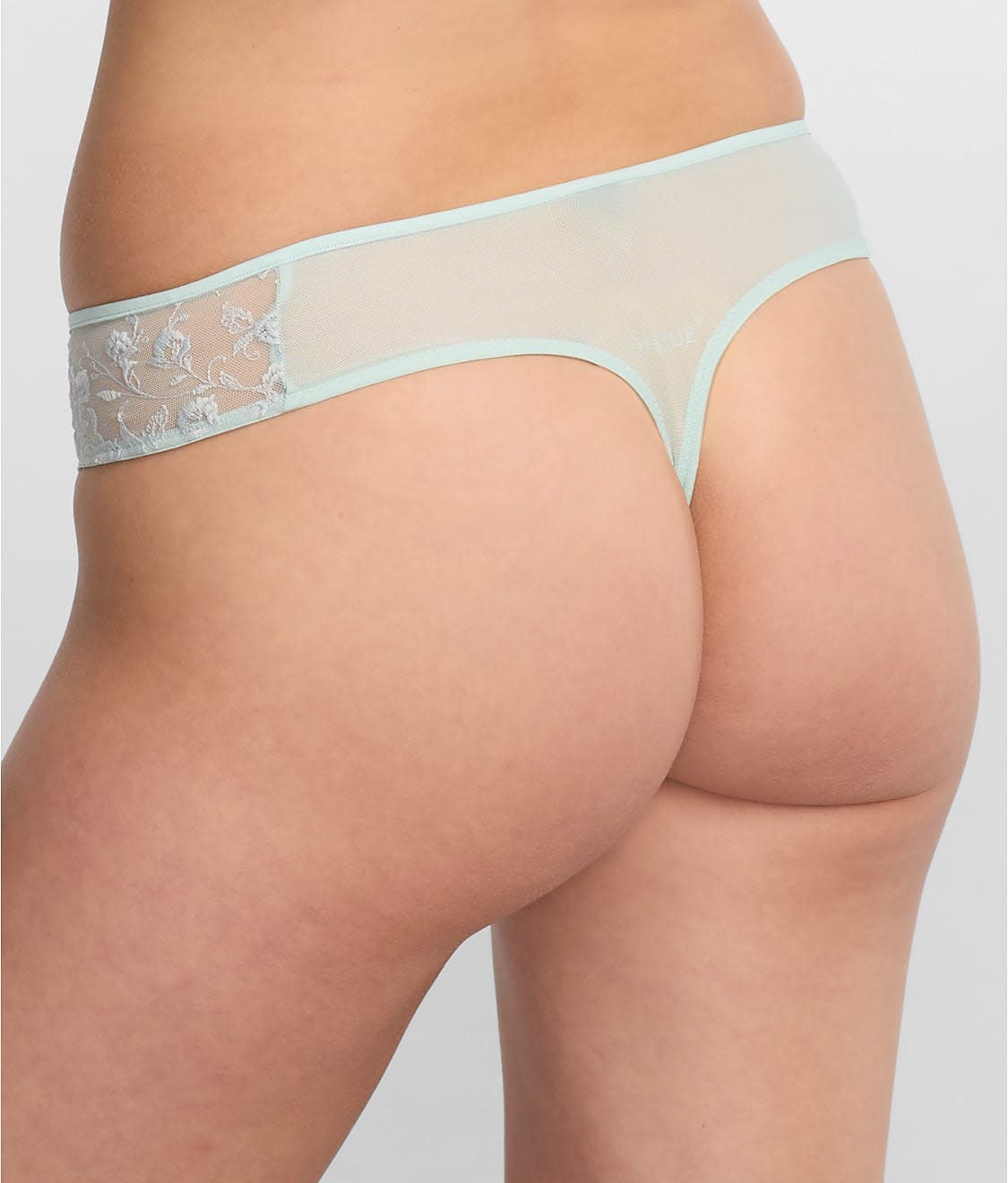 • Low rise thong with stretch embroidery over mesh