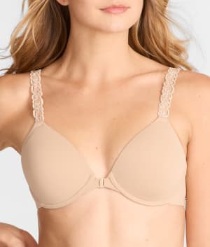 - Luxurious front-close T-shirt bra with buttery soft fabric