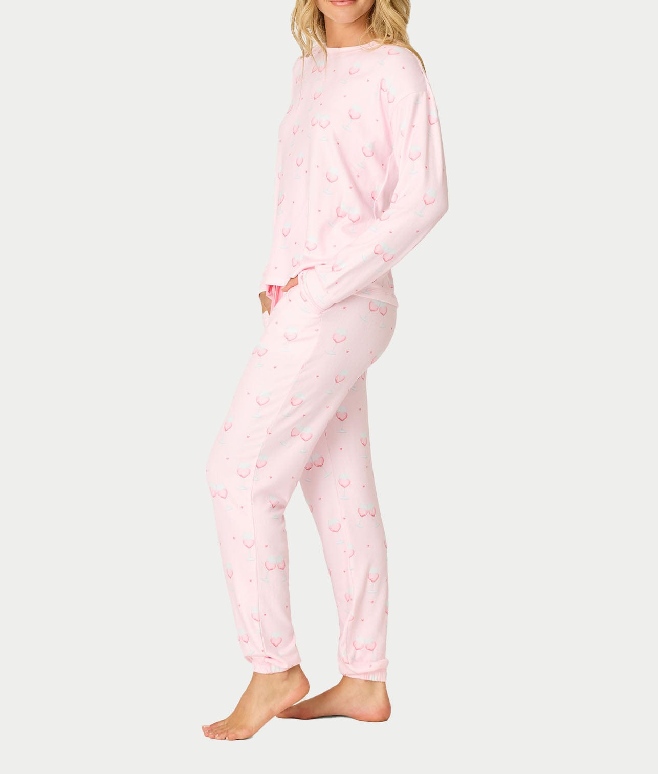 - Festive heart-shaped wine glass print adds a fun, trendy touch