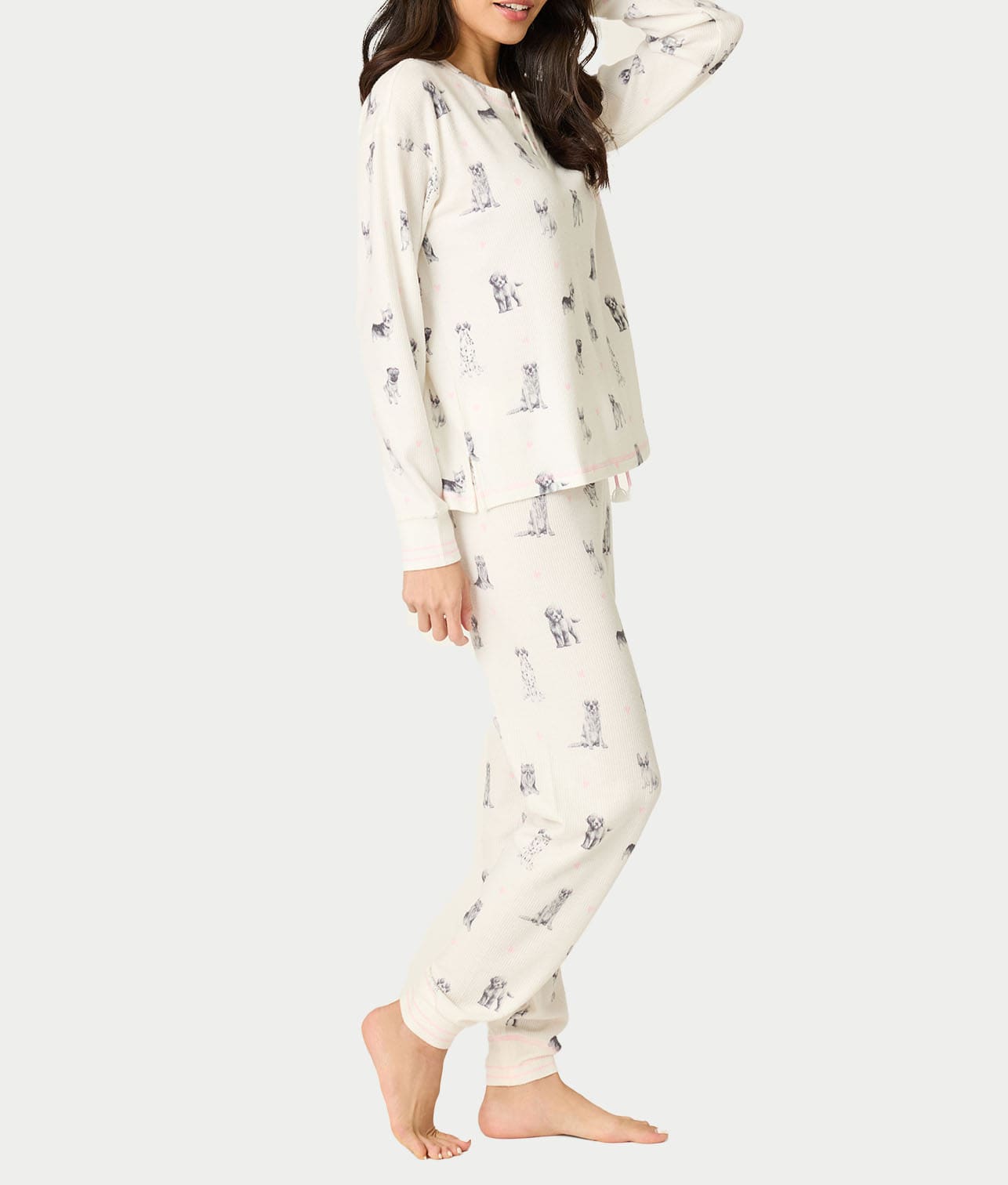 • Cozy up in this adorable puppy print pajama set