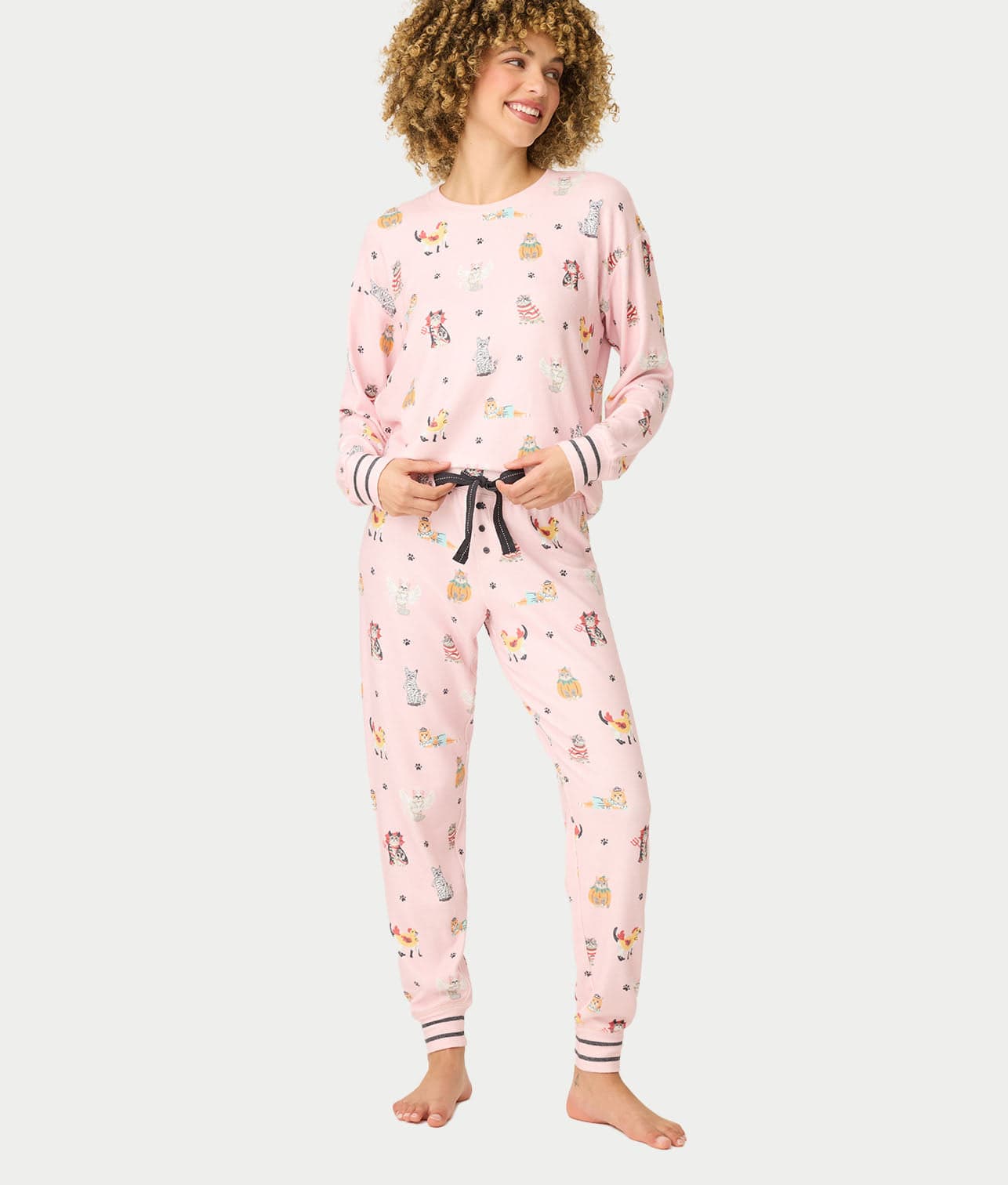 - Playful and purr-fect pajama set for this spooky season