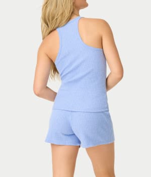 - Experience the perfect lounge set with this waffle knit tank & shorts set