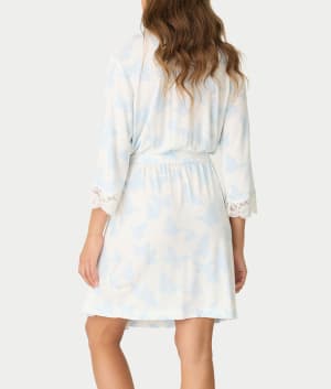 - Comfy short robe ideal for lounging, getting ready, or gifting