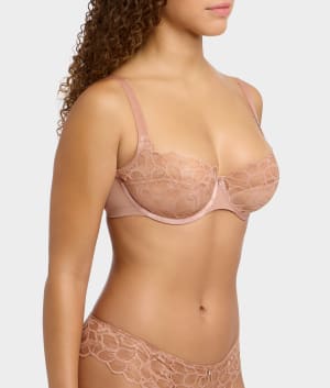 - Semi-sheer top cups with seamed mesh lining at lower cups