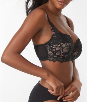 - Semi-sheer top cups with seamed mesh lining at lower cups