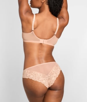 • Cheeky rear coverage with floral lace at sides