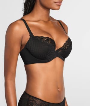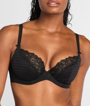 - 3-part seamed underwire cups with unique houndstooth jacquard