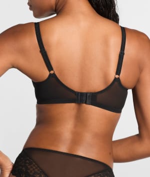 - Stretch floral lace panel is set into top of cup