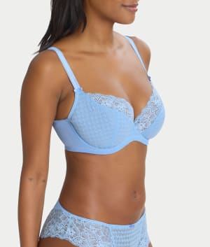 - 3-part seamed underwire cups with unique houndstooth jacquard