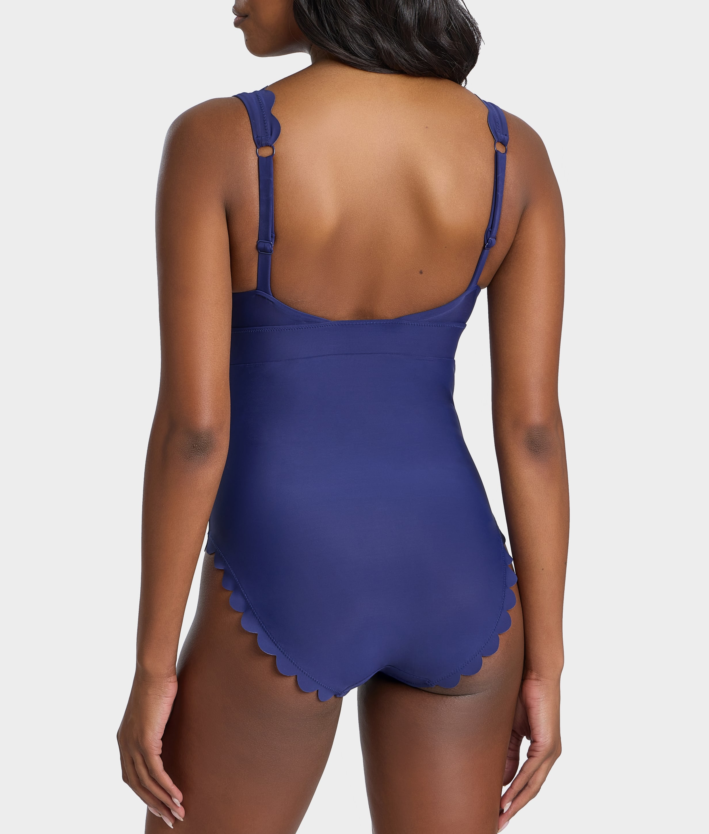 - Laser-cut scalloped detail along neck and leg openings
