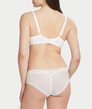 - Semi-sheer stretch lace with cotton panel