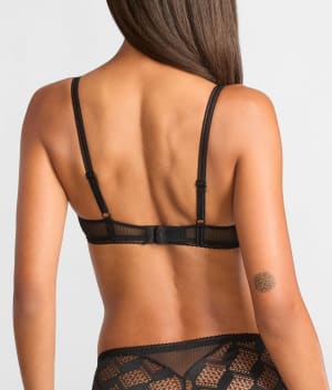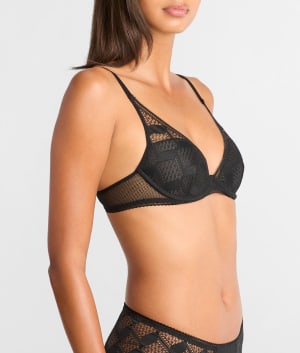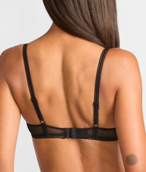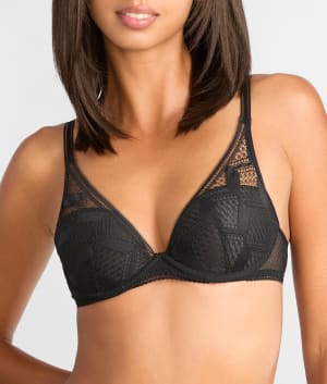 • Darted seamed cups are lined with foam with a delicate plunging neckline