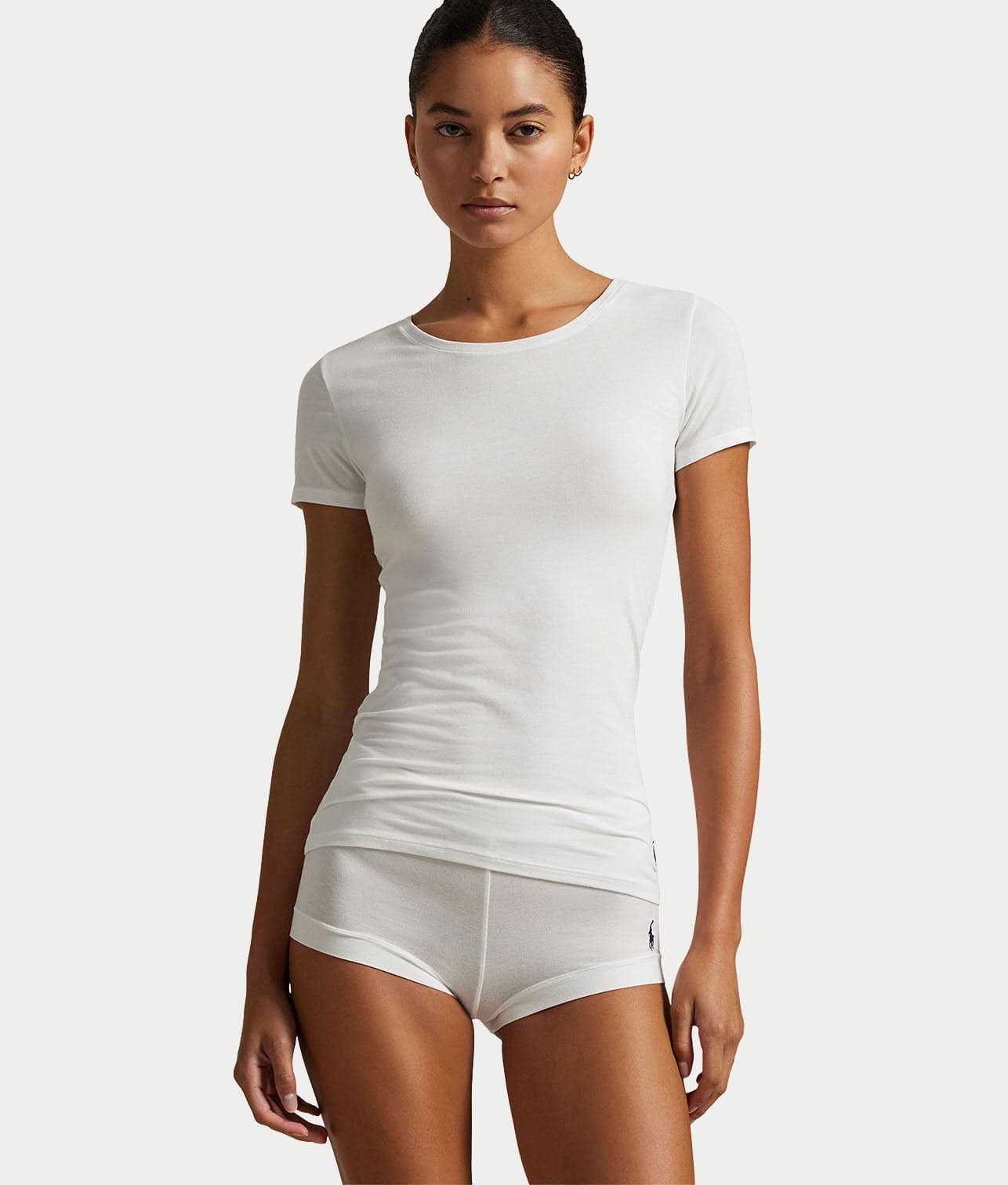 • Embroidered pony at left hem and left hip on shorts