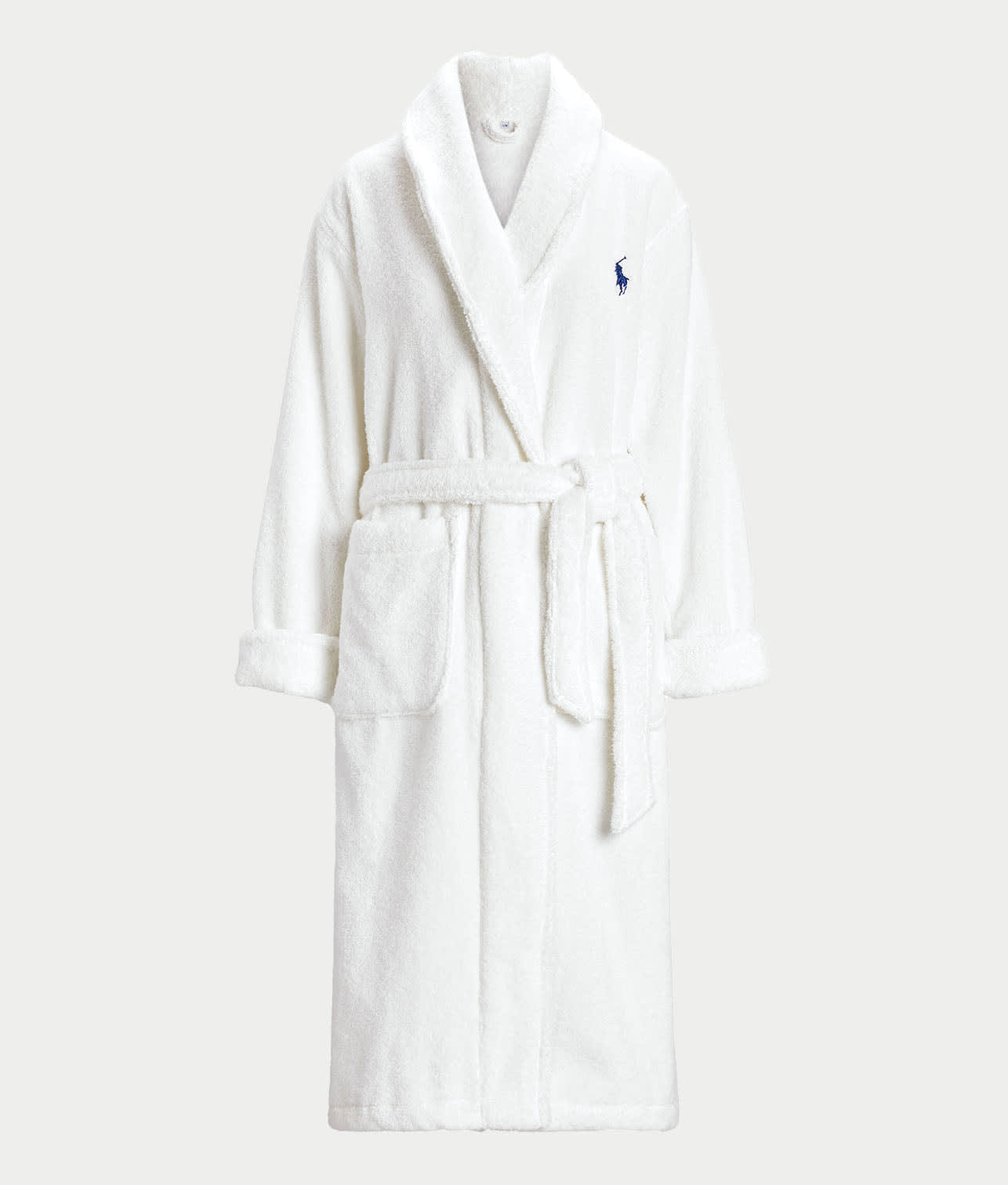 - Wide shawl collar with classic pony logo on front left chest