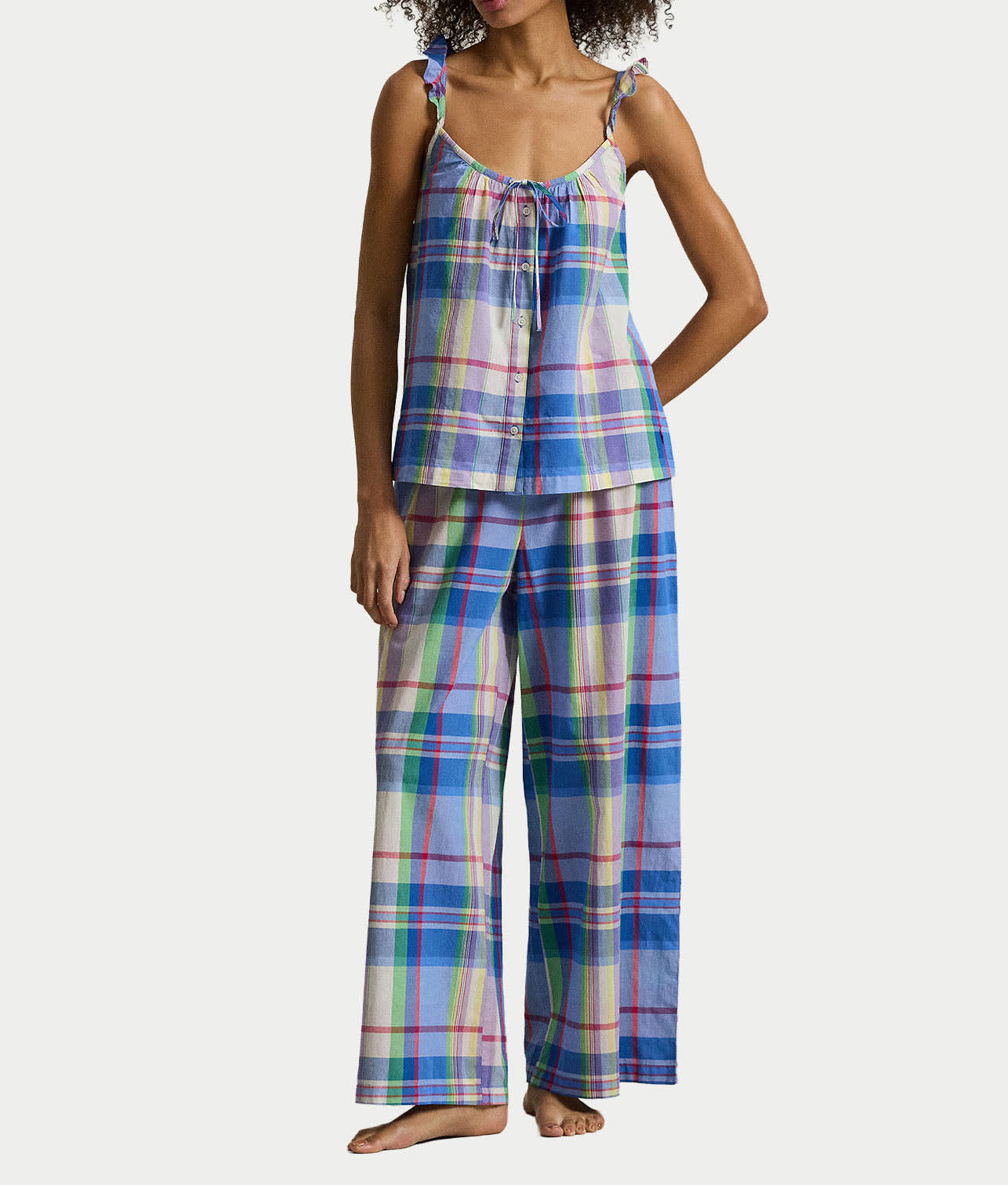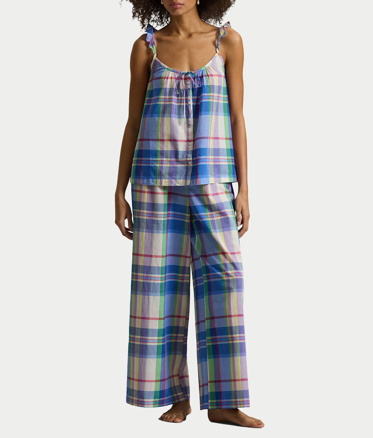 Madras Plaid Ruffle Cami Woven Pajama Set Color