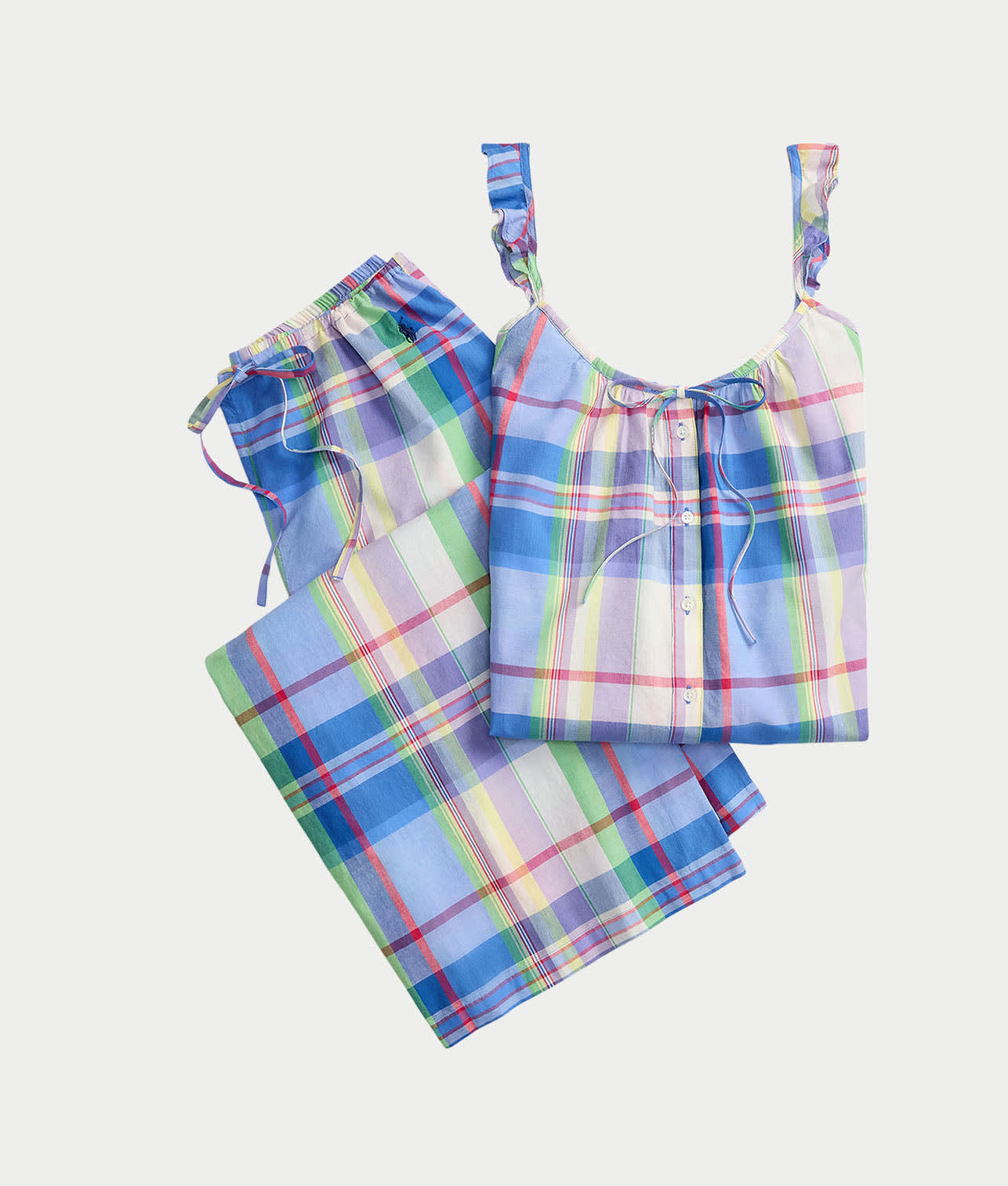 Madras Plaid Ruffle Cami Woven Pajama Set