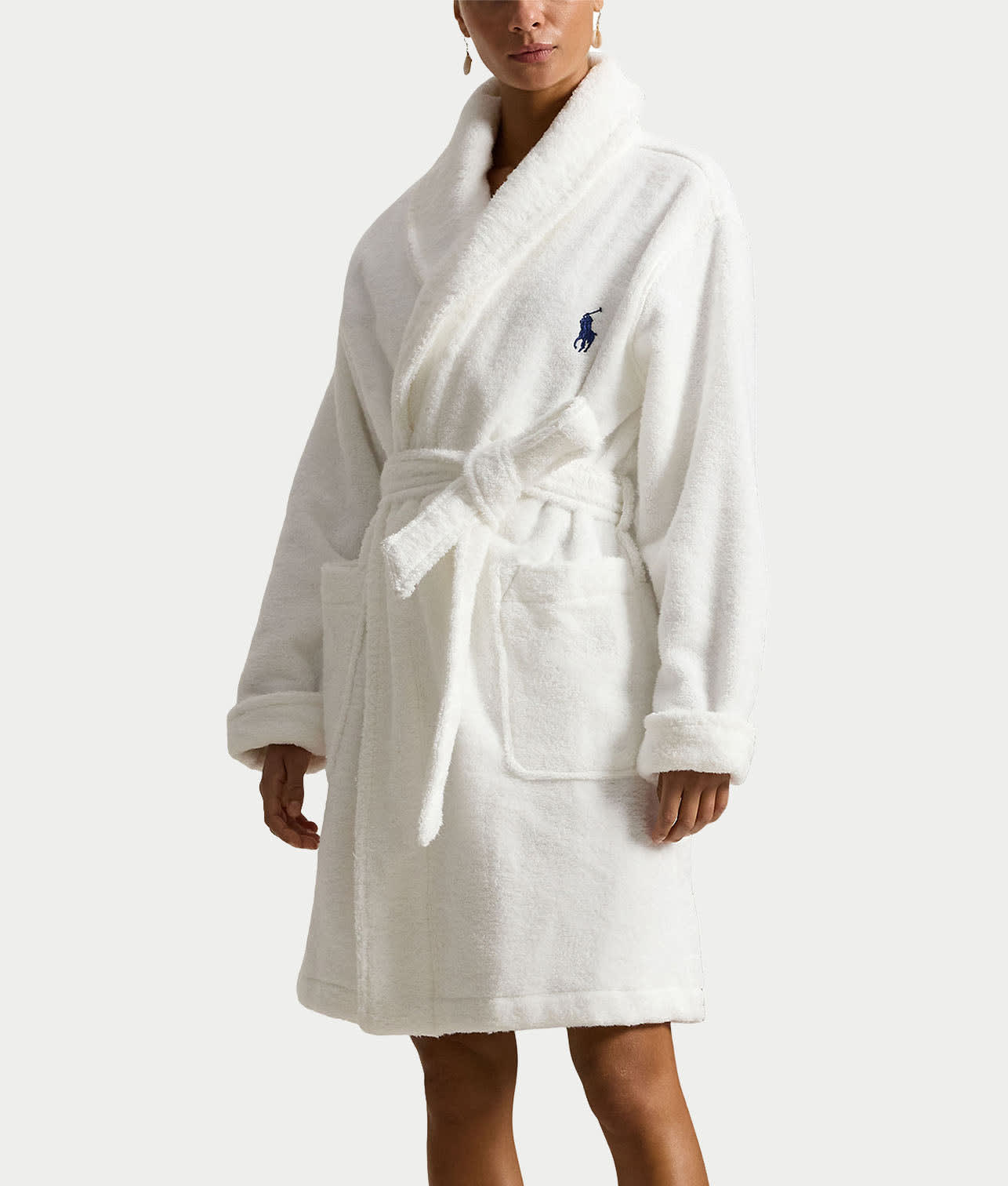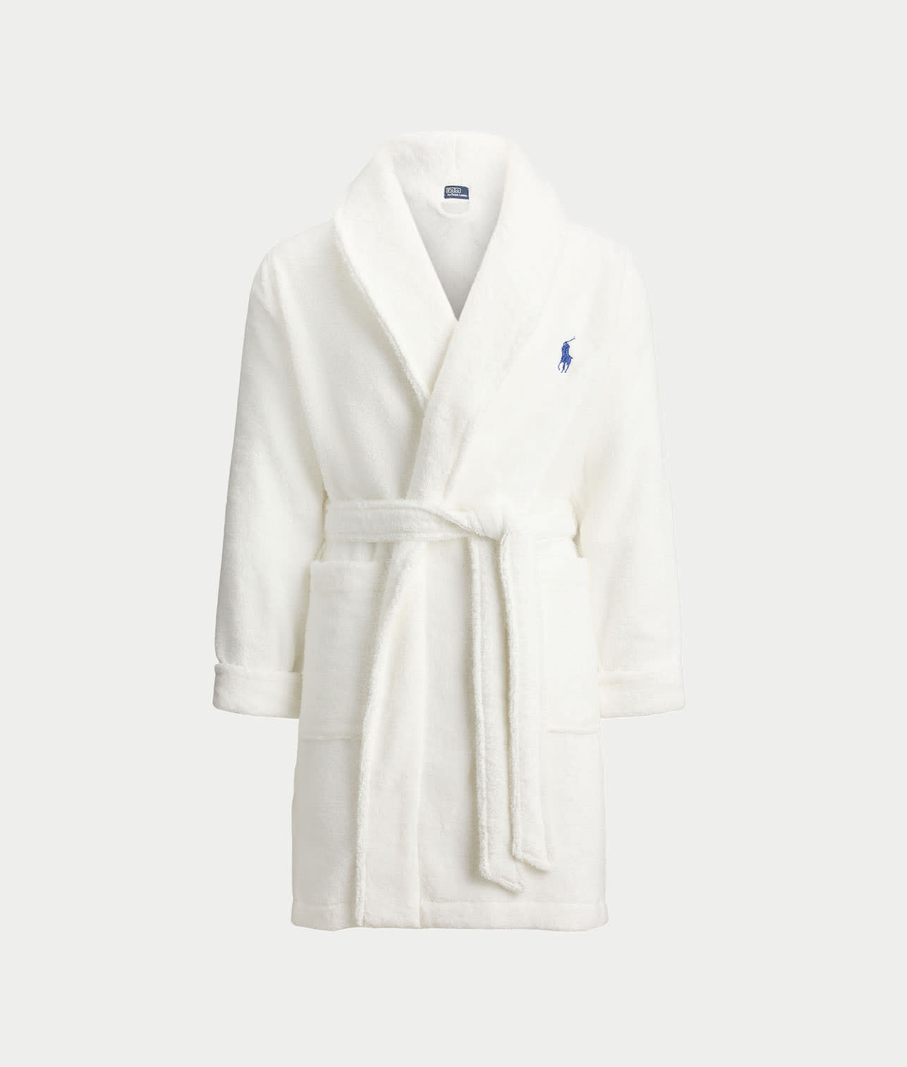 - Wide shawl collar with classic pony logo on front left chest