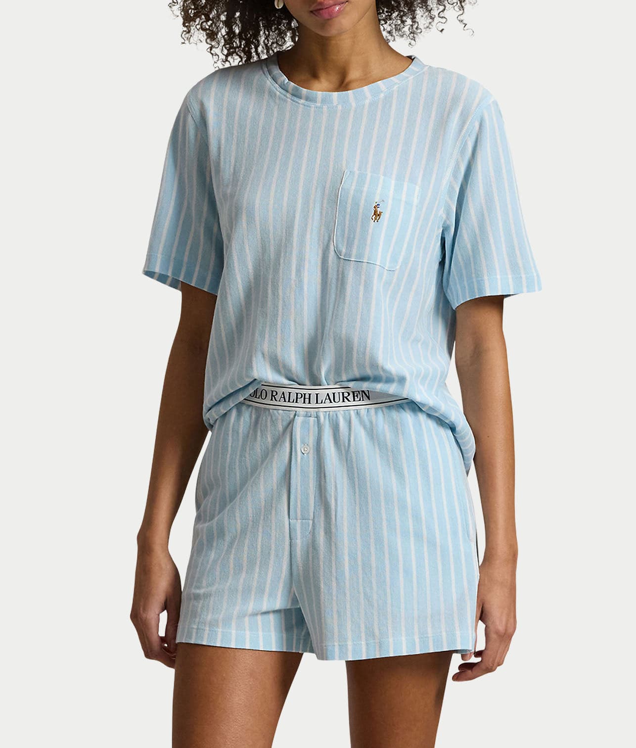 - Lounge for the day in this comfy pajama shorts set with stripes