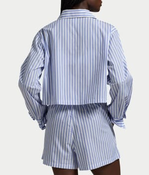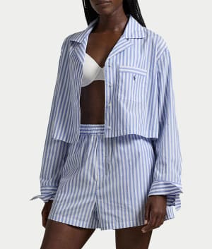 - No-dig elastic waistband on shorts with decorative button sewn fly