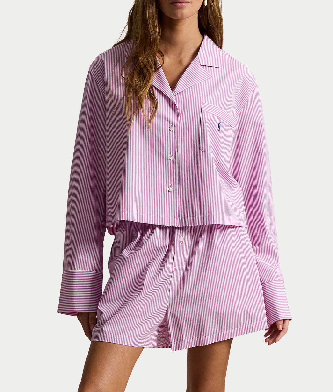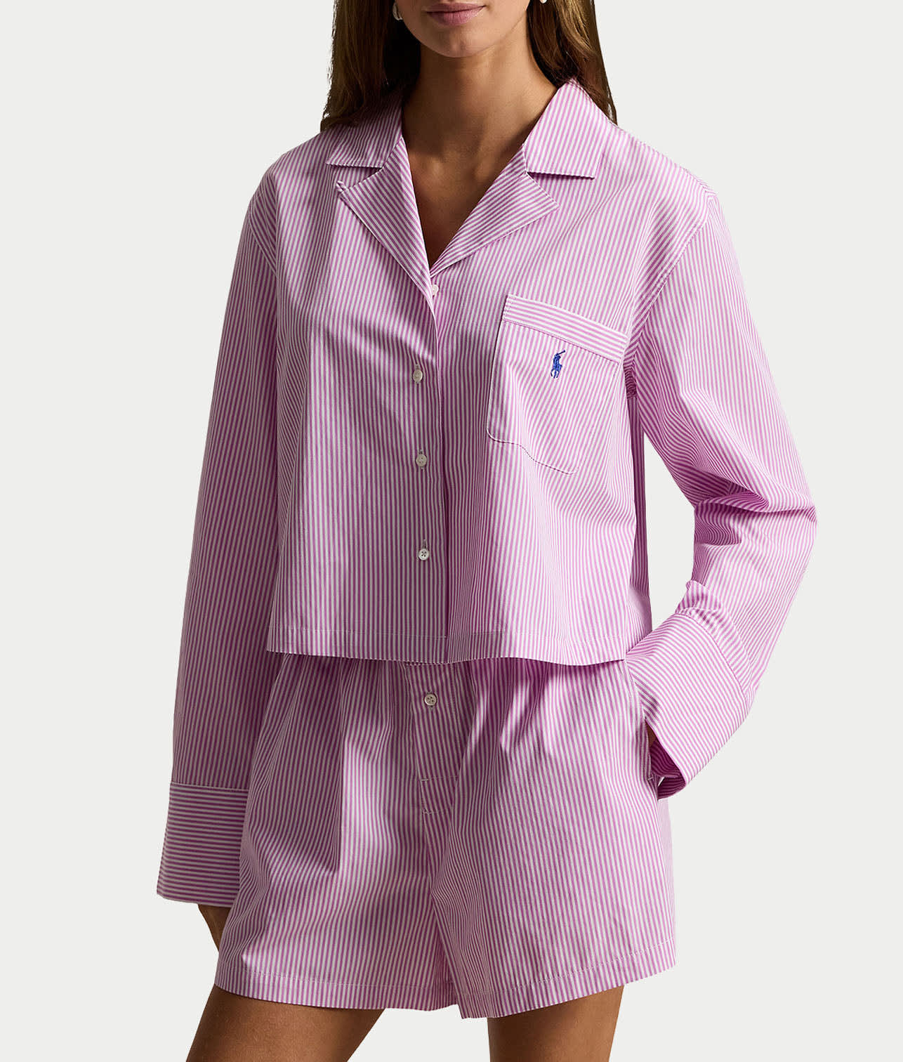 • Slip into comfort in this menswear-inspired striped pajama set