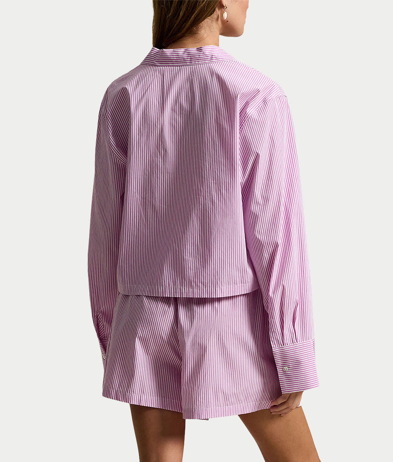 • Cropped long sleeve shirt with button-down notch collar