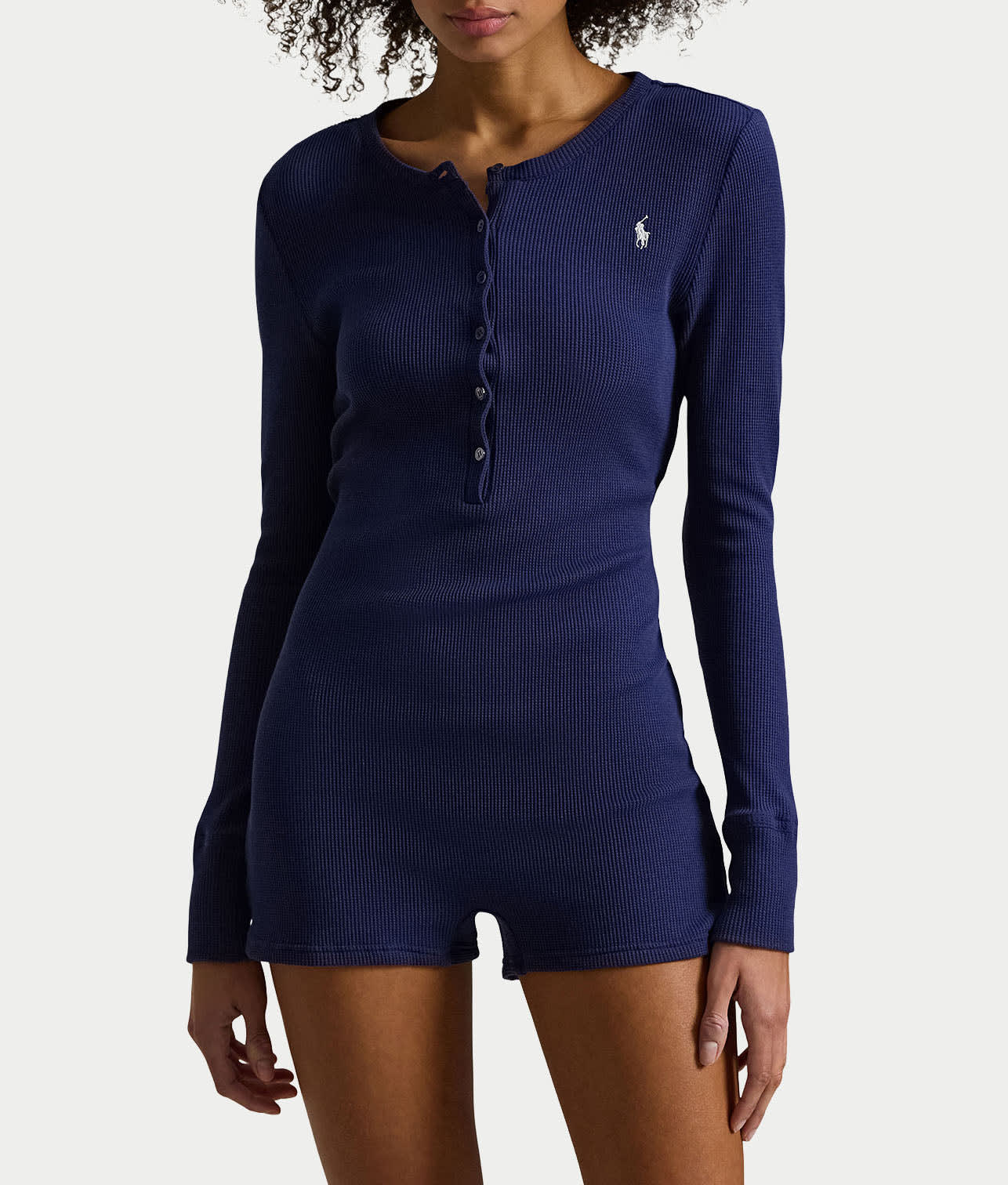 • Embrace cozy chic sleep with this thermal henley romper