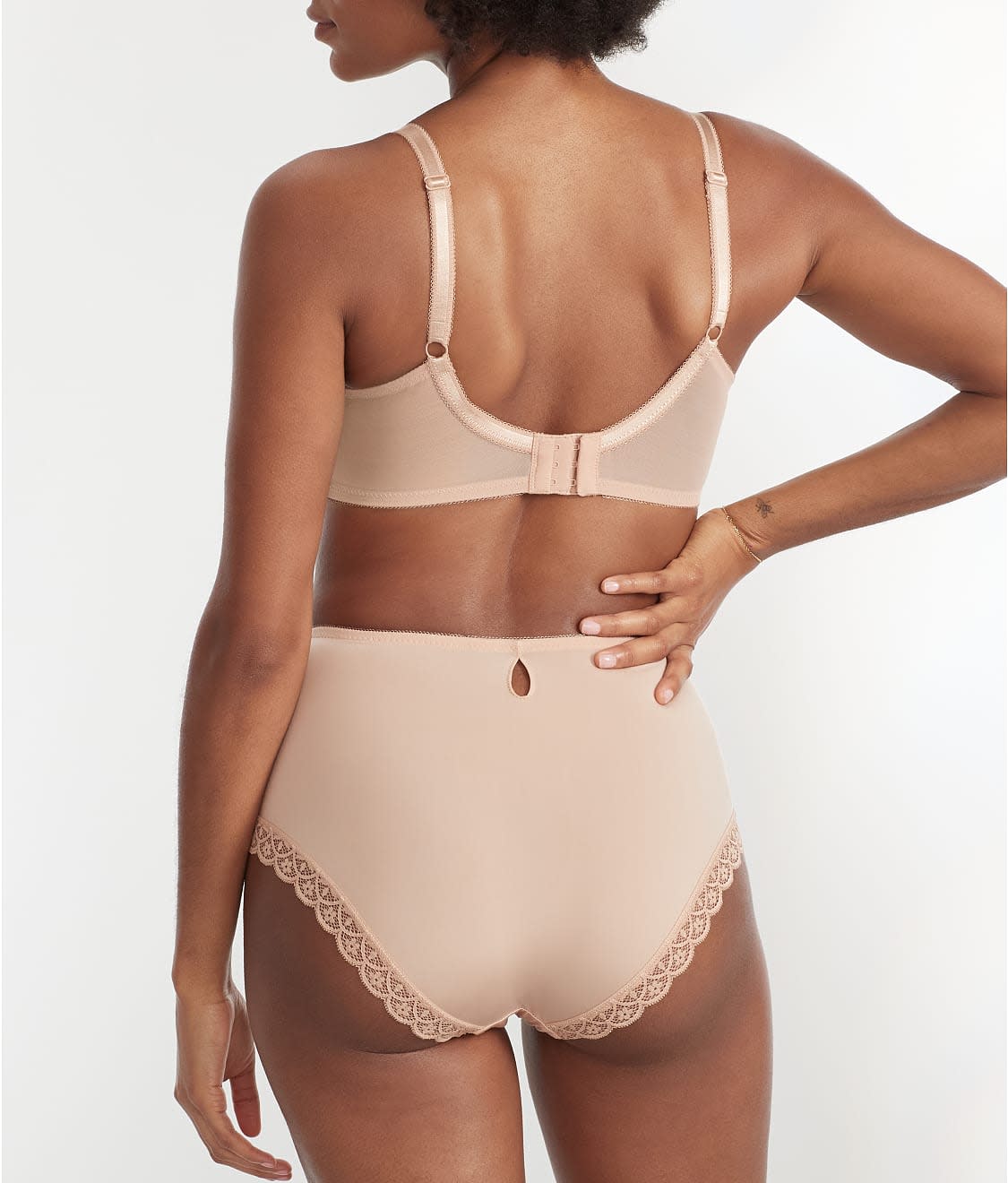 • Delicate full coverage brief with sheer lace insets at hips