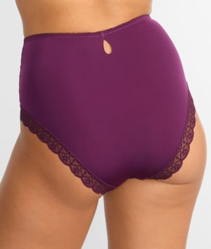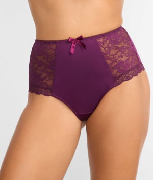 - Delicate full coverage brief with sheer lace insets at hips